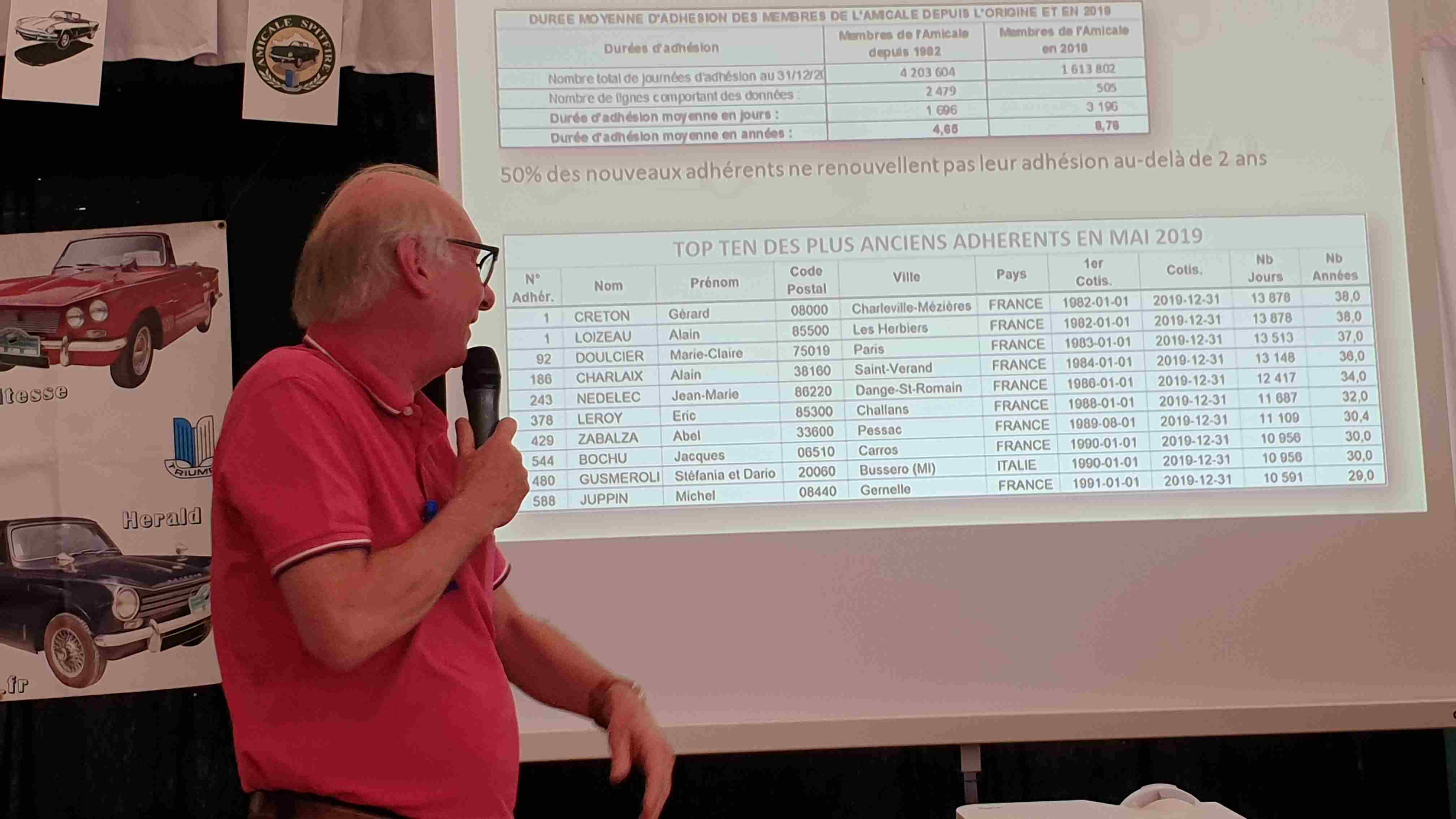 Michel créateur de Spitcote aimait aussi réaliser des statistiques diverses et variées sur les voitures et les adhérents, ici en démonstration lors de l'AG en Corrèze.