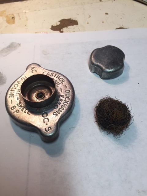 | Bonjour Paul, Ok. laisse la soupape Smiths (membrane neuve) utilisée conjointement avec le bouchon ventilé (photo tt en haut) et le cache culbu de type sans bossage/paille de fer. = système origine MK2 ;) |