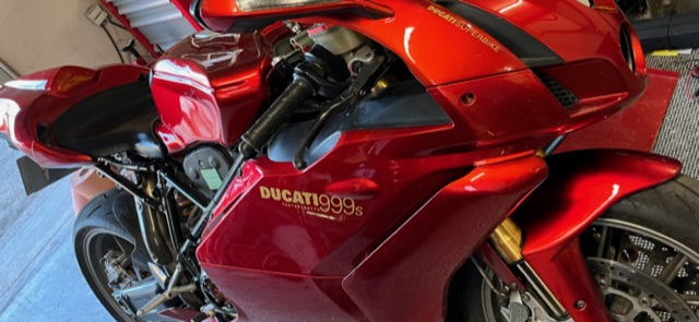 Pour Exemple une ducati que j'ai peinte sans respecter les codes d'origine, loin de la !!! un candy rouge sur nacre diamant avec 6 couches de vernis.