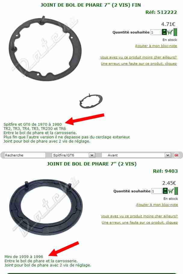 | @Philippe j'utilise la Réf. 13H565 chez Betatruc (comme joint bas photo de droite), et c'est ok avec phares Lucas sur ma MK3 de 68., les 2 tétons sont pour les vis de réglages et coïncident avec trous carrosserie. Spitamicalement JMarie |