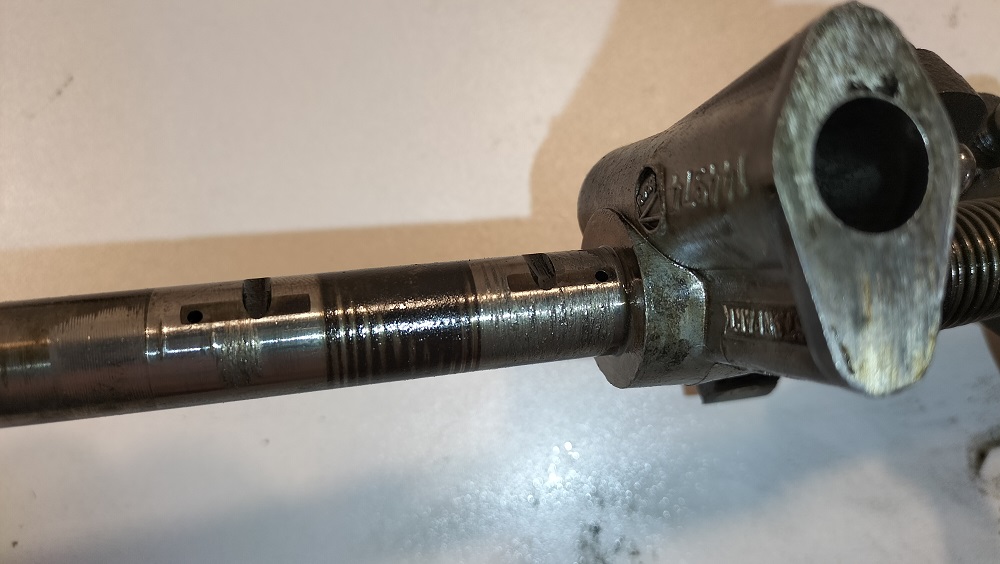 | J'ai manqué de jugeotte sur le sujet ! :-). J'ai démonté totalement la rampe 7 culbuteurs sont bien marqués. 3 sont en parfait état, donc un en cylindre 3, assez loin de l'arrivée d'huile. J'ai remarqué des incrustations sur un culbuteur, en face du trou d'huile. Ça me fait penser à un moteur qui aurai mangé un peu de merdasse. J'ai remis la vis latérale et j'ai bien vu le trou d'arrivée d'huile en dessous du support arrière. Je devrai la voir arriver. |