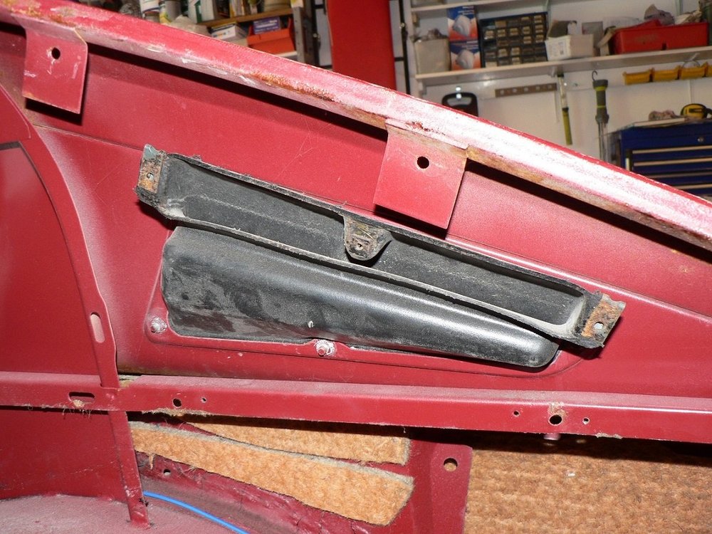Les panneaux sont fixés par des clips & vis haut et bas. Le compas de glace de custode le prend en sandwich à l'Av (2 vis). Je ne sais plus si l'écope est intercalée entre la grille extérieure et la carrosserie (comme sur la photo 2) ou si elle vient se fixer à l'intérieur? Le panneau d'isorel fait environ 3 mm. La bordure AV suit en partie la courbe de la custode (doit être pris dans le joint feutre?) cdlt :) |