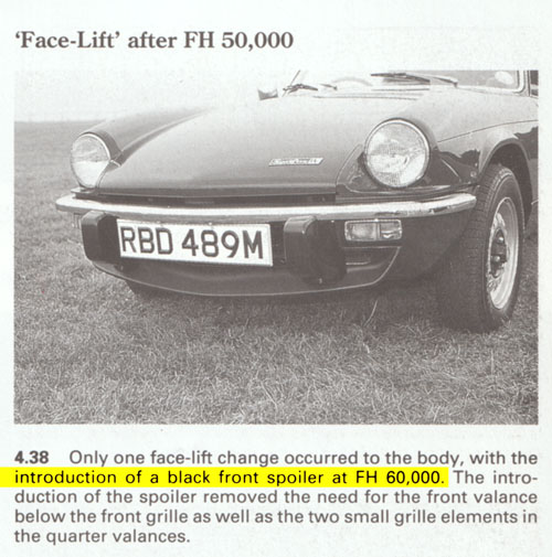 ![]() Et il n'y a pas la place d'un doute sur une modification faite par un des premiers propriétaires pour "rajeunir" sa voiture ? ...parce que, entre la violette ci-dessus, sans spoiler (piquée sur internet), et la tienne, il me semble qu’il y ait l’emplacement des « two small grille elements in the quarter valances » dans l’embouti de tôle. Non ? Ou un remplacement de jupe avant après un choc dans les années post 73 ? J’adooore ce genre d’imbroglio ! Il nous faudrait une photo de MkIV de 1973 sans spoiler >>> … Appel aux bonnes volontés pour voir « comment c’est fait » ![]() |