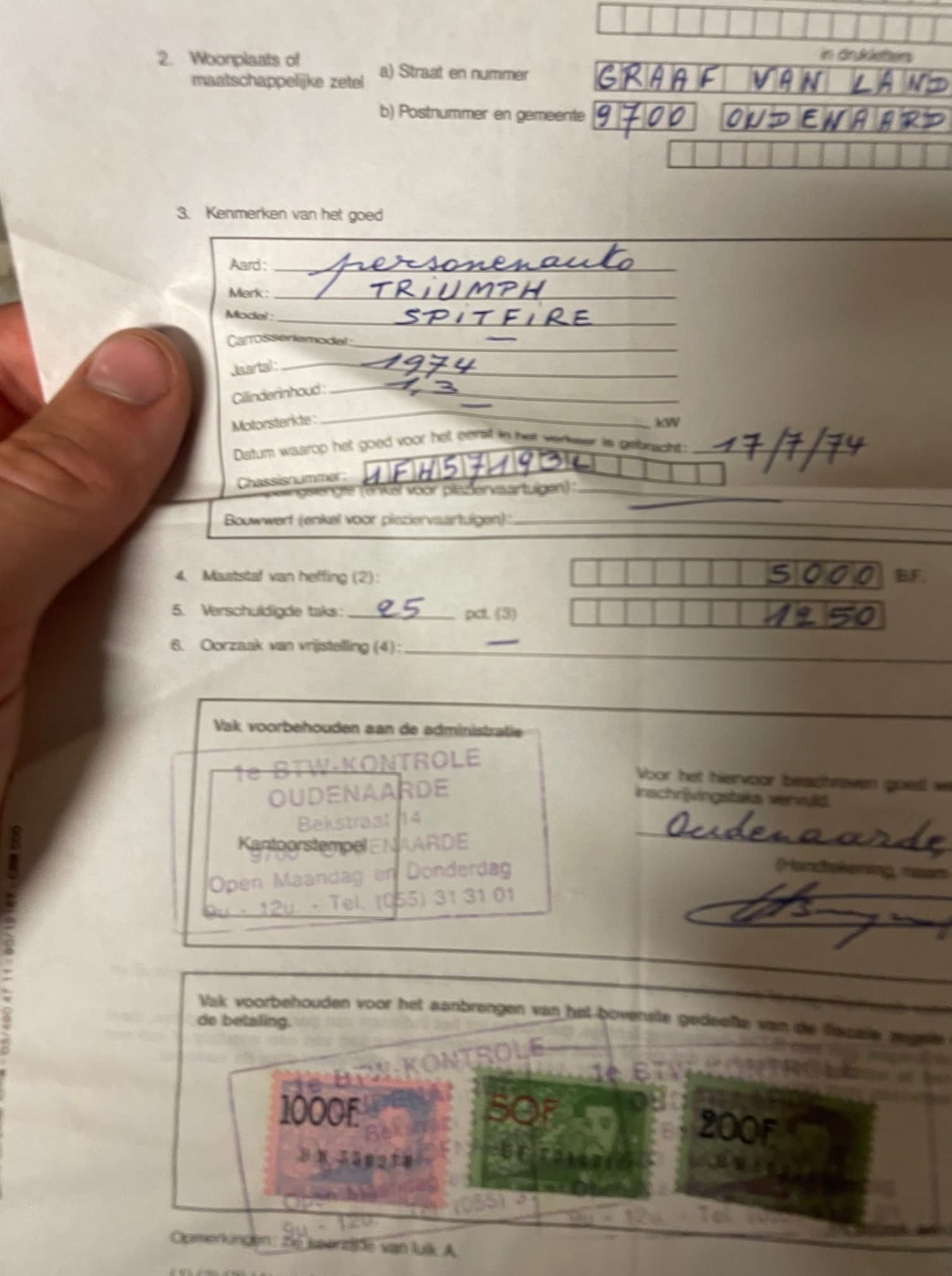 | (Le fichier "IMG_8412.jpg" est trop volumineux ou le nombre d'élement maximum est dépassé et n'a pas été enregistré) Bonjour Je suis Matisse et je cherche la vieille triupmh spitfire de mon père. C'était une voiture rouge avec un look 'racer' (voici sur la photo). J'ai envoié le club si ils eu plus d'informations. Il me dit que la voiture a été dans le club à 1994 d'une femme de Péruwelz. La plaque d'immatriculation quand mon père a eu la voiture: LBN.483 . Quand vous avez des informations sur la voiture, vous pouvez me toujours contactez sur email matisse.deroose@telenet.be. Merci d'avance Matisse Deroose |