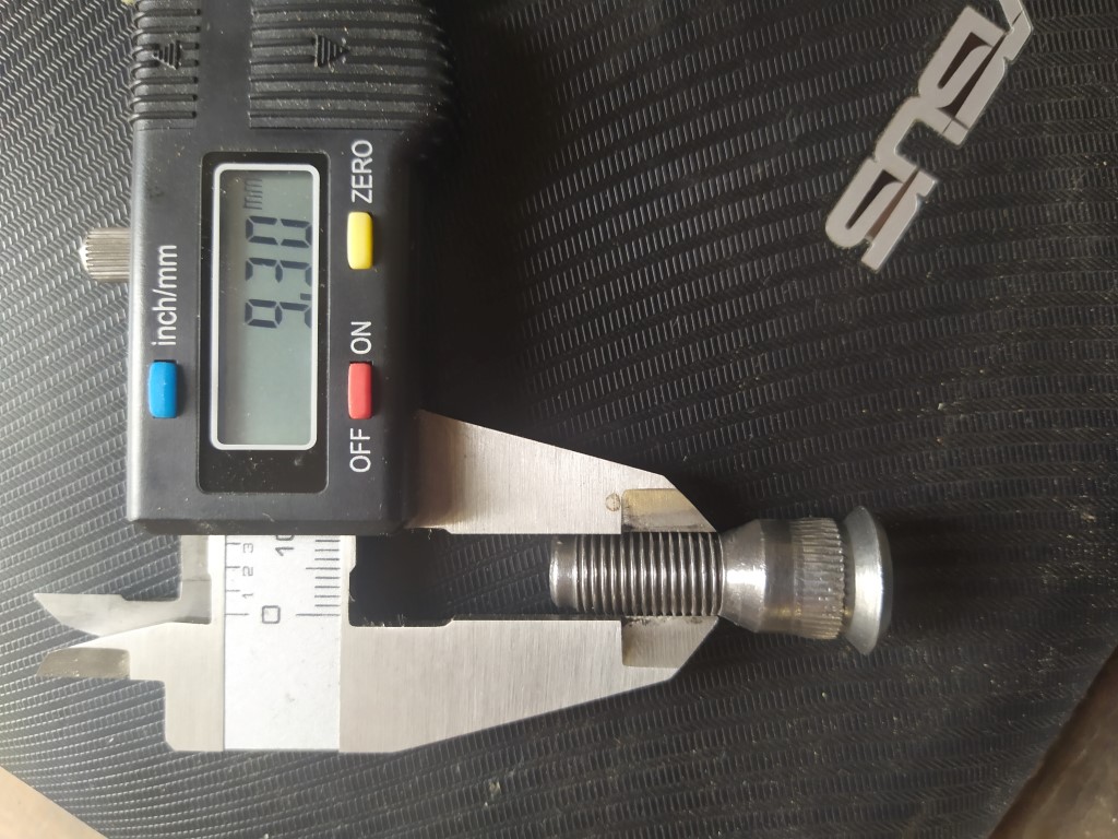 | Bonjour. Suite de mon problème de train arrière, j'ai reçu les demie arbres de chez dingo. Tout est ok, sauf que les goujons sont trop courts pour les jantes dunlop que je possède... J'ai fait un montage a blanc et ils ne seront pris que sur 4 ou 5 filets maxi. Pouvez me dire ou vous acheter vos goujons ? Je pense la qualité de fabrication. J'ai vu également qu'il existait deux types de cannelure. Large et fine. Les goujons que j'ai font 36mm de longueur totale, je pense qu'il faudrait 45 ou 50mm de longueur totale. Merci par avance et bonne après midi Thibaut |