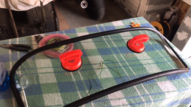 | Bonjour Marco, Merci :-) En ce qui concerne la pose du pare-brise je dirais : - poser le joint sur le pare-brise en1 er ( joint à température du domicile car plus souple et malléable ) - insertion d'un câble électrique dans la gorge du joint dont les 2 bouts seront vers le haut du pare-brise ( pour ensuite tirer sur chaque extrémité vers le bas et centre du pare-brise - Achat 2 ventouses pour la facilité de prise en mains et renforcer ses appuis / mouvements à exercer sur le pare brise - eau savonneuse tiède dont tu enduiras les surfaces d'accostages respectives - Dans chaque angle, un peu de vaseline pour fluidifier le passage du câble - pose du pare-brise J'ai effectué la pose seul, avec les deux ventouses. Lorsqu'il était juste positionné, j'ai retiré une ventouse que j'ai ensuite replacé à l'intérieur de l'habitacle afin de pouvoir exercer une force du haut vers le bas ( pour imiter l'aide d'un tiers qui appuie sur le pare brise part l'extérieur, mais moi je me "pendais à la ventouse" lol) Temps total 3 bonnes heures... PS : et donc pas de joint Seelastik.... Actuellement je suis sur ma lunette AR, j'applique la même méthode mais impossible de descendre l'ensemble lunette et joint correctement dans la gorge... A suivre... PS 2: oui tout à fait il était noir. Ciel acheté chez NEwton, de mauvaise qualité ( très fin ) , de plus mes coupes et ma pose étaient imprécises..bref cela ne me convenait pas. J'ai donc acheté du Skaï perforé beige au mètre plus épais, repris le patron avec ma chérie qui me la cousue, et nouvelle pose. Là c'est ok :-) plus clair et plus joli ! |