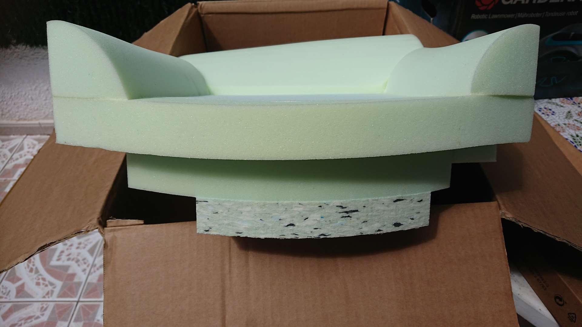 | non, sur la 2ème couche en partant du haut, la mousse dépassait par rapport aux 2 bandes en 1/4 de cercle. La aussi tu peux contrôler en posant la mousse dans le panier de l'assise. | |