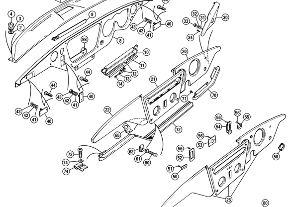 devant : 4 vis qui choppent les 3 morceau du tableau de bord ensembles (pattes de jonction non référencées)