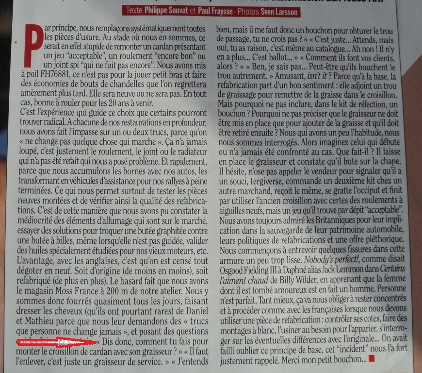 Bonjour, chaque fois que je commande des croisillons pour l'arbre de transmission de ma TR2 , on me livre des croisillons de petites tailles de spit ou GT6.