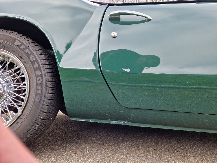 | Bonjour Laurent, C'est une restauration ancienne mais globalement l'auto est apparemment en tbe et semble avoir été soignée avec le souci du détail. Juste quelques petites réserves visibles au premier abord: L'ajustement moyen des portes dans leur encadrement: peut-être (?) la conséquence d'une restauration carrosserie poussée, mais effectuée sans le support du chassis, ou bien il faut juste prévoir un réglage affiné des parties concernées (capot/portes/jupe AV). (tout en sachant que des jours parfaits sont rares sur les ouvrants des Spit.) Autre point à contrôler : sur la photo montrant le moteur, voir le coin droit inférieur du capot au niveau de la fin du retour d'aile/arche : (redressage/fibre?) mais fort possible que l'angle de prise de vue soit en cause.. cdlt :) |