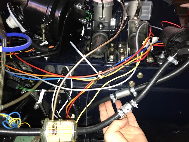 | Re! :) Peut-être pas idéal ici.. : trop haute par rapport au niveau de carburant (afin de ne pas la fatiguer à l'aspi) et aussi trop de calories "en aval" du moteur. Perso je la mettrais plutôt vers l'avant, dans le flux d'air canalisé par les protections latérales du moteur tout en la préservant des "intempéries" et à un niveau similaire à celui de l'arrivée du carburant, mais ce n'est que mon avis :) |