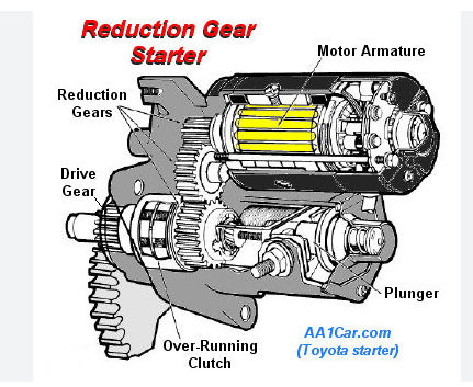 ![]() ![]() Je pense donc comme je l'ai dit plus haut, que c'est une histoire de rendement du moteur électrique, meilleur à régime élevé. J'ai vu des publicités mensongères sur le démarreur hi-torque (chez AES notamment) où ils disent que le démarreur hi-torque consomme deux fois moins, c'est faux. Il existe deux sortes de démultiplications : une latérale où le moteur est décalé, et une axiale voir photos. |