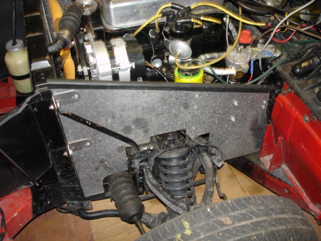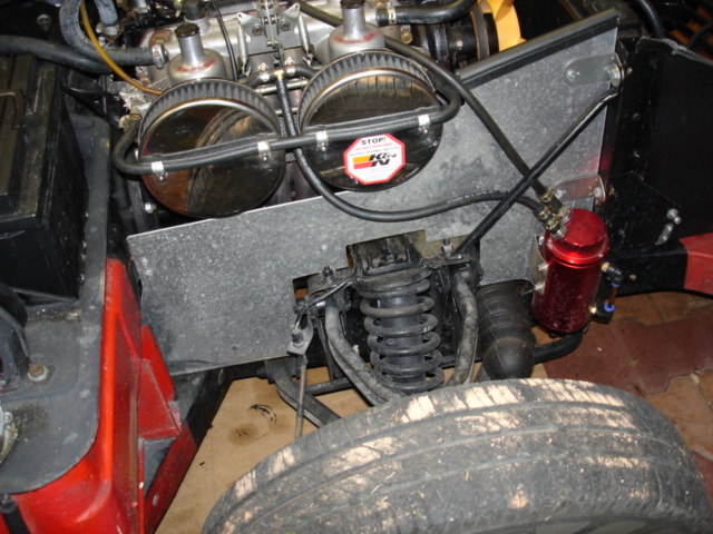 Sur ma MK4 il n'y avait rien du tout. J'ai taillé par tâtonnement les 2 côtés dans du carton rigide et je les ai amené chez un métallier qui m'a vendu au poids, une misère, deux chutes d'aluminium que j'ai ensuite découpé à la scie sauteuse. J'ai donc deux panneaux rigides et solides sur les quels j'ai pu fixer, à gauche la pompe électrique et le réservoir du lave-glaces et à droite un déshuileur. Amicalement. |