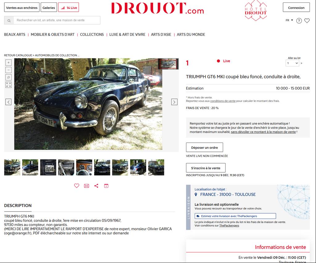 | (Le fichier "Sans titre-1.jpg" est trop volumineux ou le nombre d'élement maximum est dépassé et n'a pas été enregistré) Bonjour à tous, Vous serez peut-être intéressé ? https://drouot.com/l/19475151-triumph-gt6-mki-coupe-bleu-fon @++ Gérard |