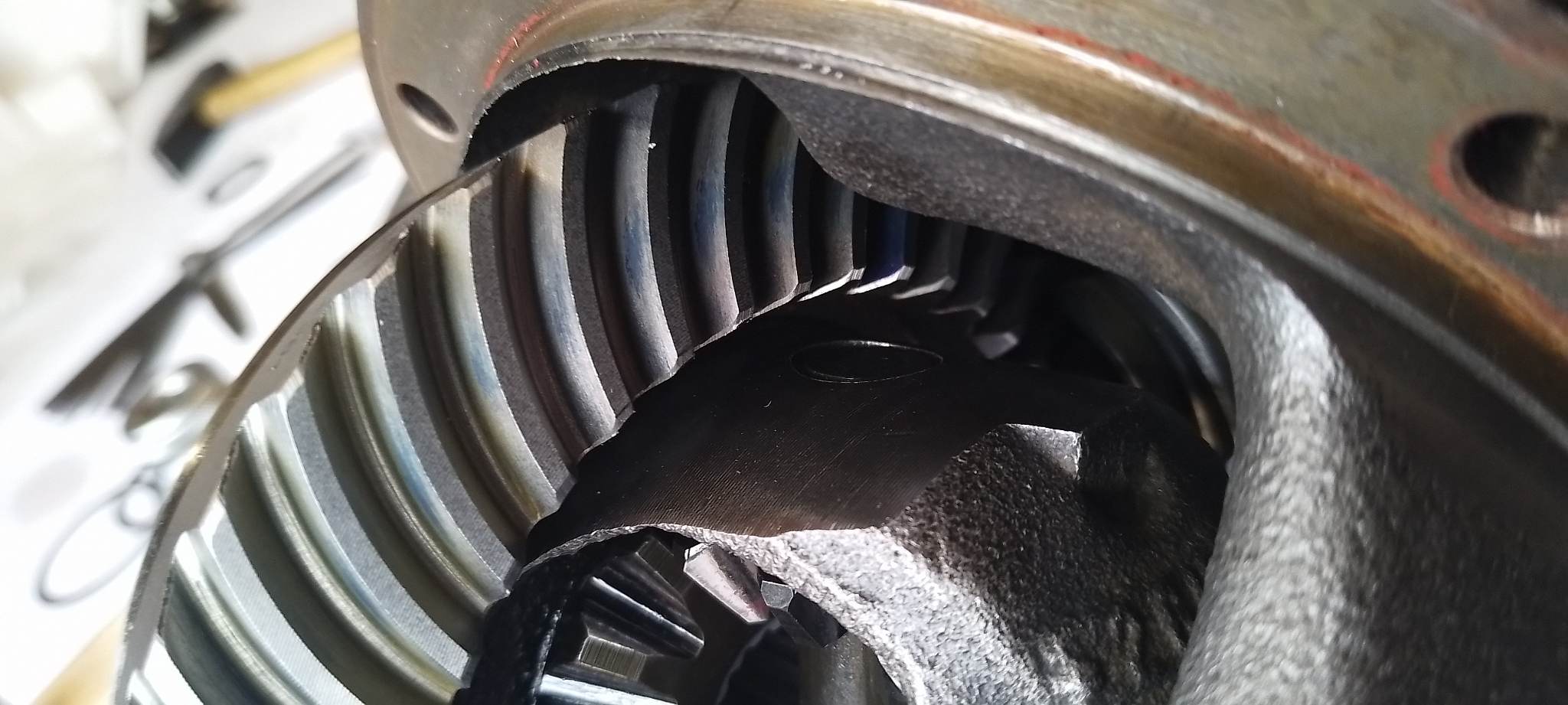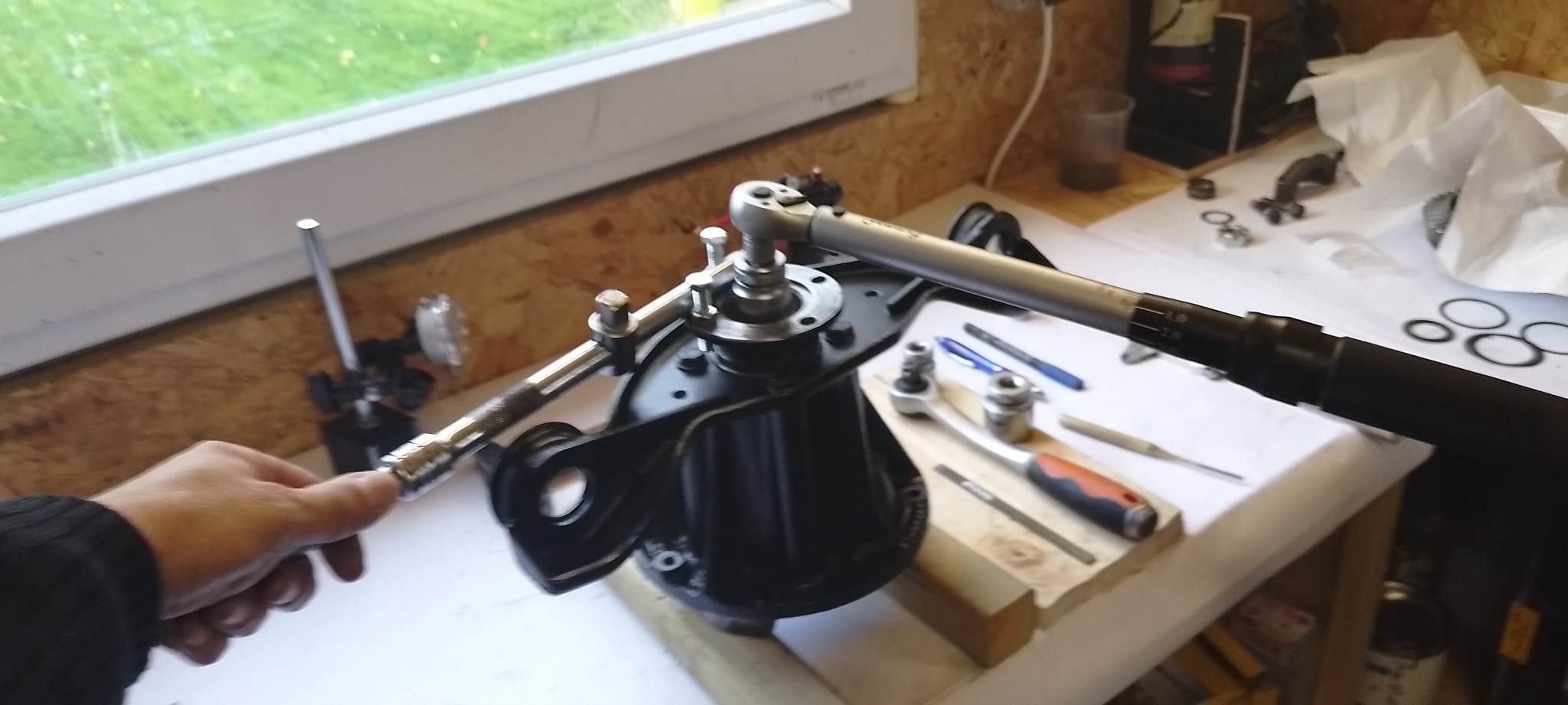 | Bonjour Fabrice, Rappel important : La position à 76.99mm est une étape à finaliser pour obtenir la position de la pointe du cône du pignon, qui, je le rappelle doit être sécant avec le plan horizontal passant par la pointe de la couronne entenant compte également vérifier la profondeur des logement de roulements latéraux du boitier différentiel; Ton montage te satisfait momentanément, mais sache que c'est la pointe de la denture du pignon qui porte sur la denture de la couronne.... Cdlt |