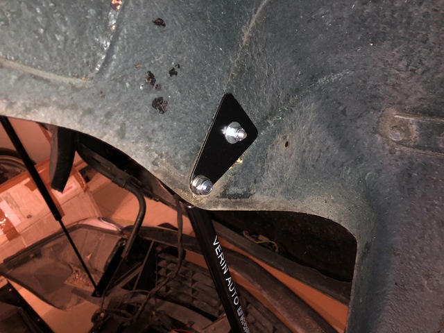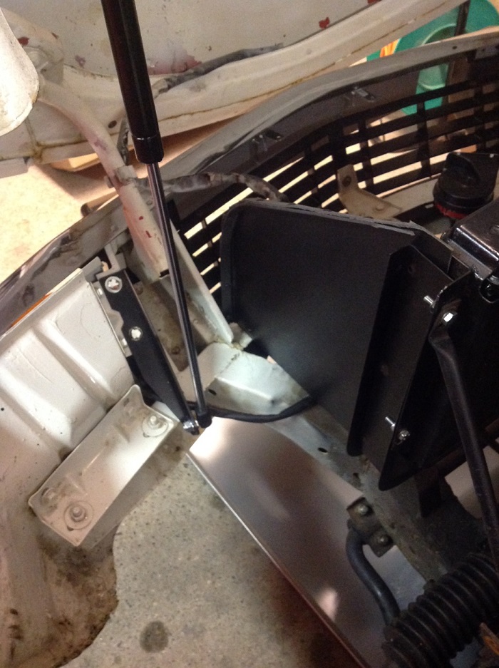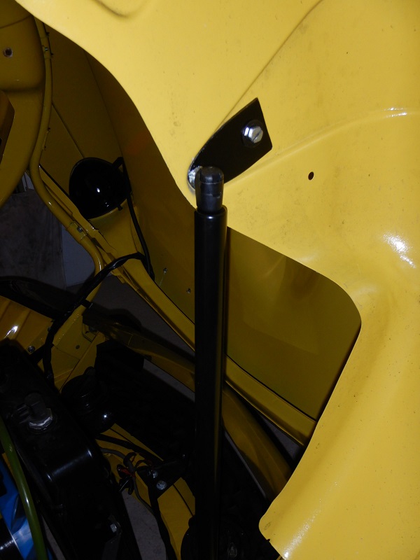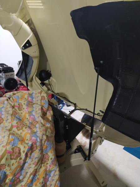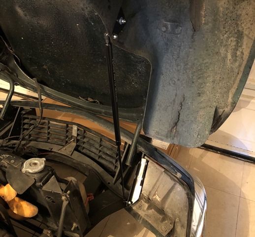 Pour être certain de ne pas être embêté , j'ai monté chaque vérin côté roue ; ainsi je suis certain que rien ne touche. Un vrai plaisir , plus aucune torsion du capot. Bye Alain |