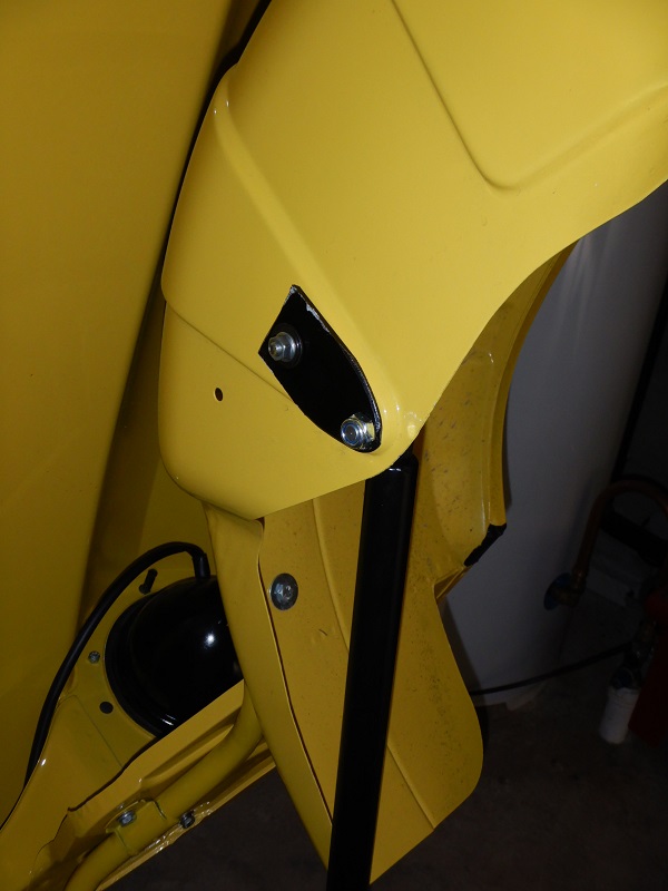 | Perso j'ai choisi le trou du bas car : -Situé dans une zone nervurée structurellement plus solide. -Permet un angle d'ouverture du capot plus important. J'ai essayé avec les 2, sur un plan purement fonctionnel, ça marche pareil, mais avec le trou "du haut" on perd les 2 avantages ci dessus. |