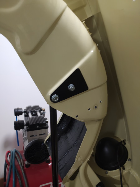 | @ RICOU15 J’ai eu le problème côté.....G ! Le vérin touchait la patte support de béquille de capot soudée à la tourelle J’ai tiré sur la joue d’aile vers l’exterieur au delà de la limite « élastique » et maintenant ça passe ! Tu peux faire pareil côté boîte à air si il n’y a pas trop à « gagner » |