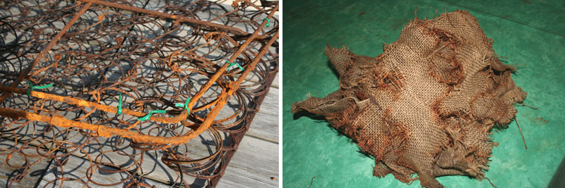 . Malgré ces 57 ans, elle n'est pas trop dégradée ; il faut juste recoudre une retombée neuve sur la housse de l'assise et changer la toile entre la mousse sous la housse (bien conservée) et le sommier. Mais, avant, il faut quand même refaire une petite beauté aux ressorts qui sont encore presque tous au poste. Quelques-uns sont dégrafés (et ré-agrafables) mais, apparemment, aucun n'est cassé. Comme je ne suis pas sellier j'ai quelques interrogations sur la meilleure manière de faire.