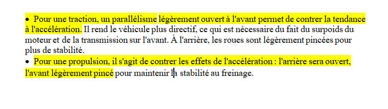 | pour ma part ... toutes mes voitures modernes tirent à droite sur les routes à devers .... seule solution malgré toutes les tentatives de réglage pro .. augmenter légèrement l'ouverture du "pincement" ...., je fais ça de façon empirique en ajoutant 1 ou 2 ° d'ouverture !! en fait : sur nos spit , il faut savoir que la propulsion provoque du pincement sur le train avant ... ce qui fait qu'en statique tu es parallèle ou ouvert , mais en dynamique tu es pincé . donc tres sensible à l'inclinaison latérale de la route ... |