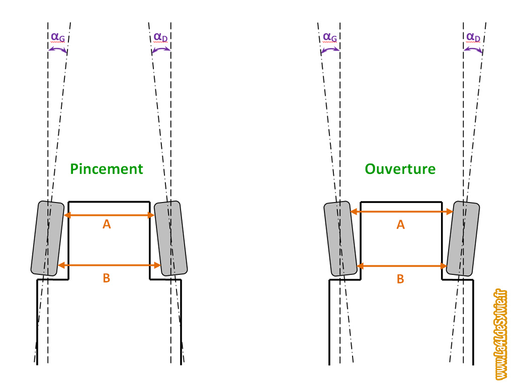 ![]() on a tendance à régler les roues avant soit parallèles, soit avec un pincement ... sur une propulsion le pincement s'accentue en dynamique ... donc , il est préférable de régler avec un poil d'ouverture, cela permet en plus d'augmenter la tenue en ligne (sans toucher le volant) aujourd'hui, les réglages sont super fin ..malgré les réglages , les autos moderne tirent souvent du coté penché de la route ... sur nos spit , un vieux mécano m'a sorti une sorte de pied a coulisse géant, que tu pose à l'intérieur de la jante 'avant l'axe et derrière l'axe) qui te permet de connaitre en mm l'ouverture de tes roues avant .. pour moi, j'ai 3 mm ma voiture tire vraiment droit ... j'ai reproduit la même chose sur mes autos moderne pour plus de confort ... |