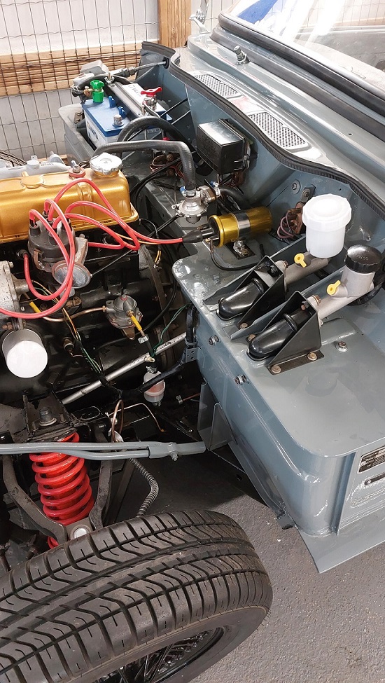 ![]() Vérification que le moteur n’est pas bloqué, yes il tourne normalement avec une clé sur l’écrou de vilebrequin. Le circuit électrique fonctionne à 100% après la mise d’une nouvelle batterie. (éclairage, démarreur, essuie-glace, voyants….) J’ai commandé une nouvelle bobine d’allumage et un kit de réfection des carbus SU. Je vais faire une vidange du moteur aussi avant le démarrage. |