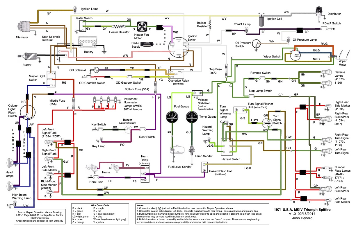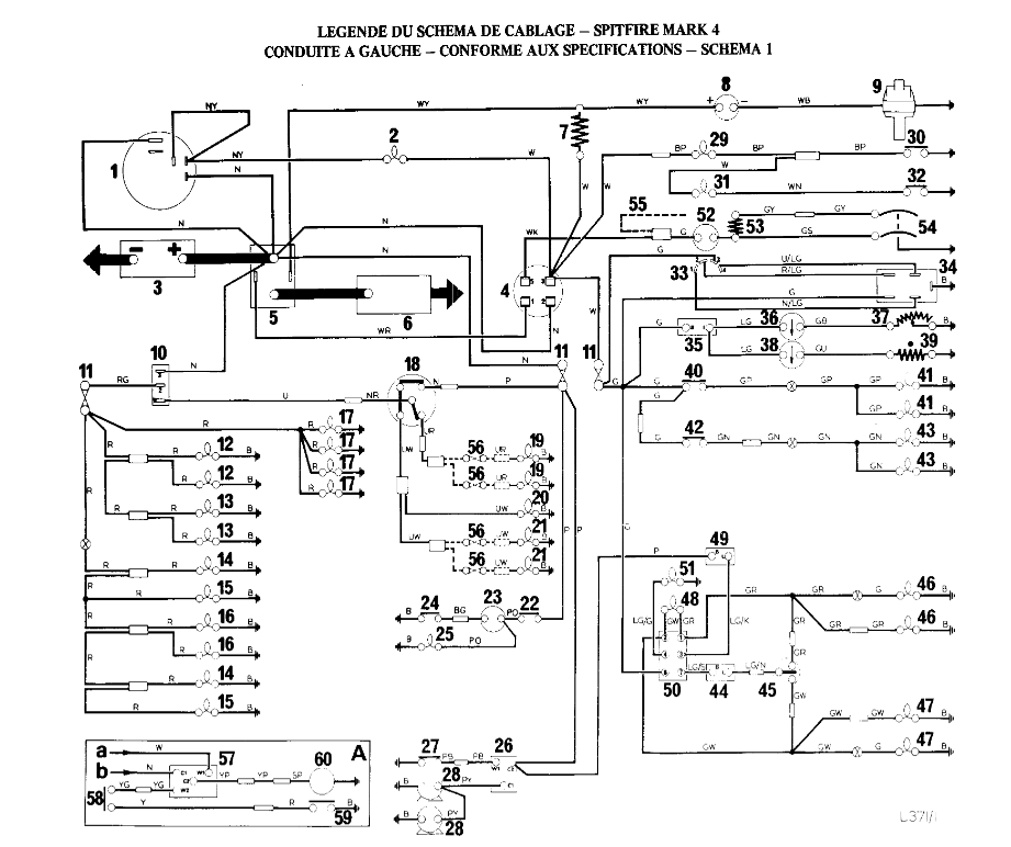 ![]() En premier , met les faisceau complétement a plat : je crois qu il est composé en 2 partie, AV & AR qui ce rejoigne au niveau de la boite a fusible . Il doit y avoir des repères pour chaque fil !! , sinon tester avec une lampe témoin. En mème temps , il serait bien d intercaler des relais pour les codes/phares! Pense aussi a changer les passe fil en caoutchouc . C est pas difficile : le fil bleu , avec le fil bleu , etc etc ;) ;) ;) Ci joint le schéma MK IV cdlt j p c |