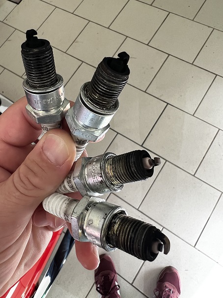 | (Le fichier "20220827_070404827_iOS.jpg" est trop volumineux ou le nombre d'élement maximum est dépassé et n'a pas été enregistré) Bonjour, Je rencontre depuis 1 mois environ des problèmes sans doute liés au réglage de carburation. Je m'explique : Je suis obligé de rouler avec le starter partiellement tiré en permanence pour ne pas caler au ralenti, ce moteur chaud comme froid. Ces derniers jours je rencontre un phénomène de broutage à bas régime. Je pense directement à un problème de réglage de richesse et de ralenti. Une fois les bougies déposées, je confirme un déséquilibre entre les deux cylindres avant et arrière. Je procède donc à un changement de bougies pour repartir sur de bonne bases et juste un réglage richesse et ralenti. Qu'en pensez vous ? |