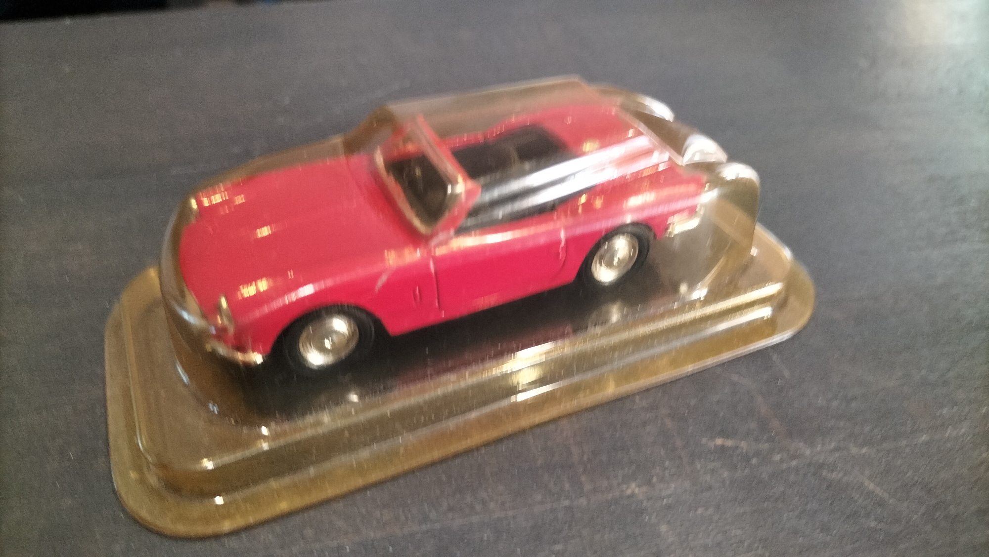 | Bonjour. Pour ceux que ça pourrait intéresser, j'ai acheté sur une brocante une petite voiture solido, Triumph Spitfire mk3 rouge. Ce n'est pas ma voiture, je l'ai acheté si ça peut intéresser un membre. |
