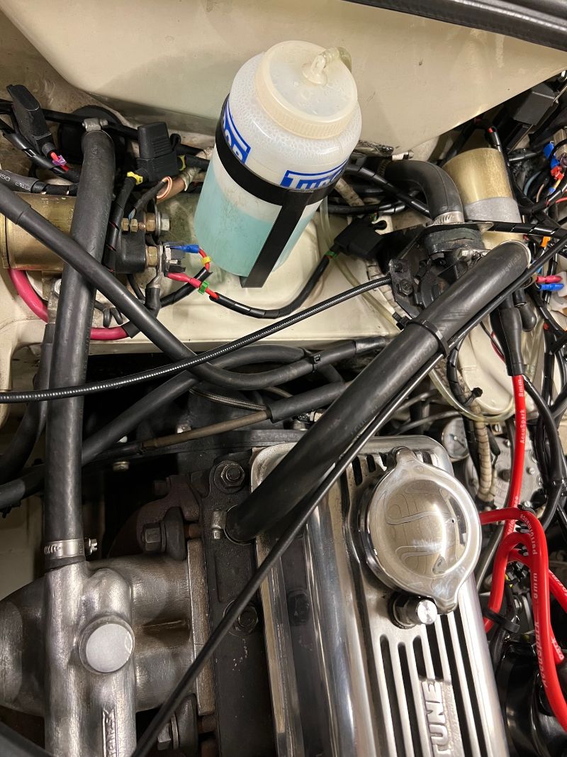 | Bonjour Filouspit, Oui, sur la photo normal que ça chauffe en continu, le radia est alimenté via les 2 durites. La durite culasse > robinet de culasse est correctement installée mais n'est peut-être pas du type correct (avec coudes, permettant de limiter sa hauteur). Effectivement à gauche en sortie de pipe il manque le tube retour (inox), fixé derrière le corps de pompe à eau et sur un goujon culasse. Il te faut le tube 1er modèle idem MK3, pas 1500. Le robinet de chauffage est peut-être fonctionnel mais tant que le système n'est pas remis en conformité, difficile de le contrôler. Bon we :) |