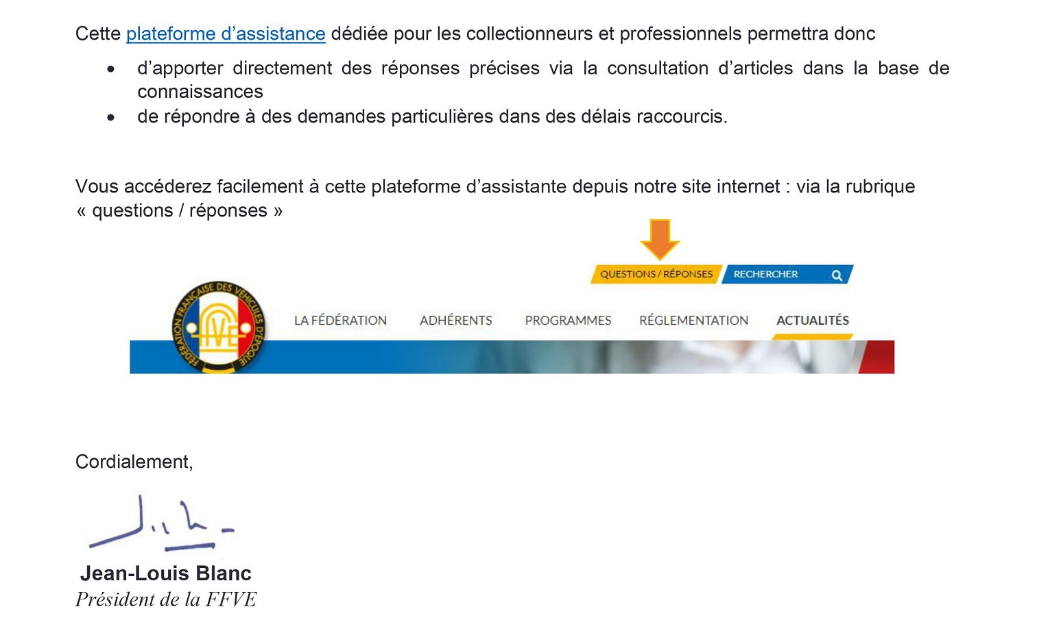 re : un service d’assistance de la FFVE |