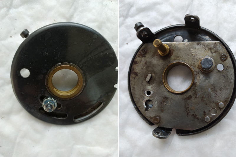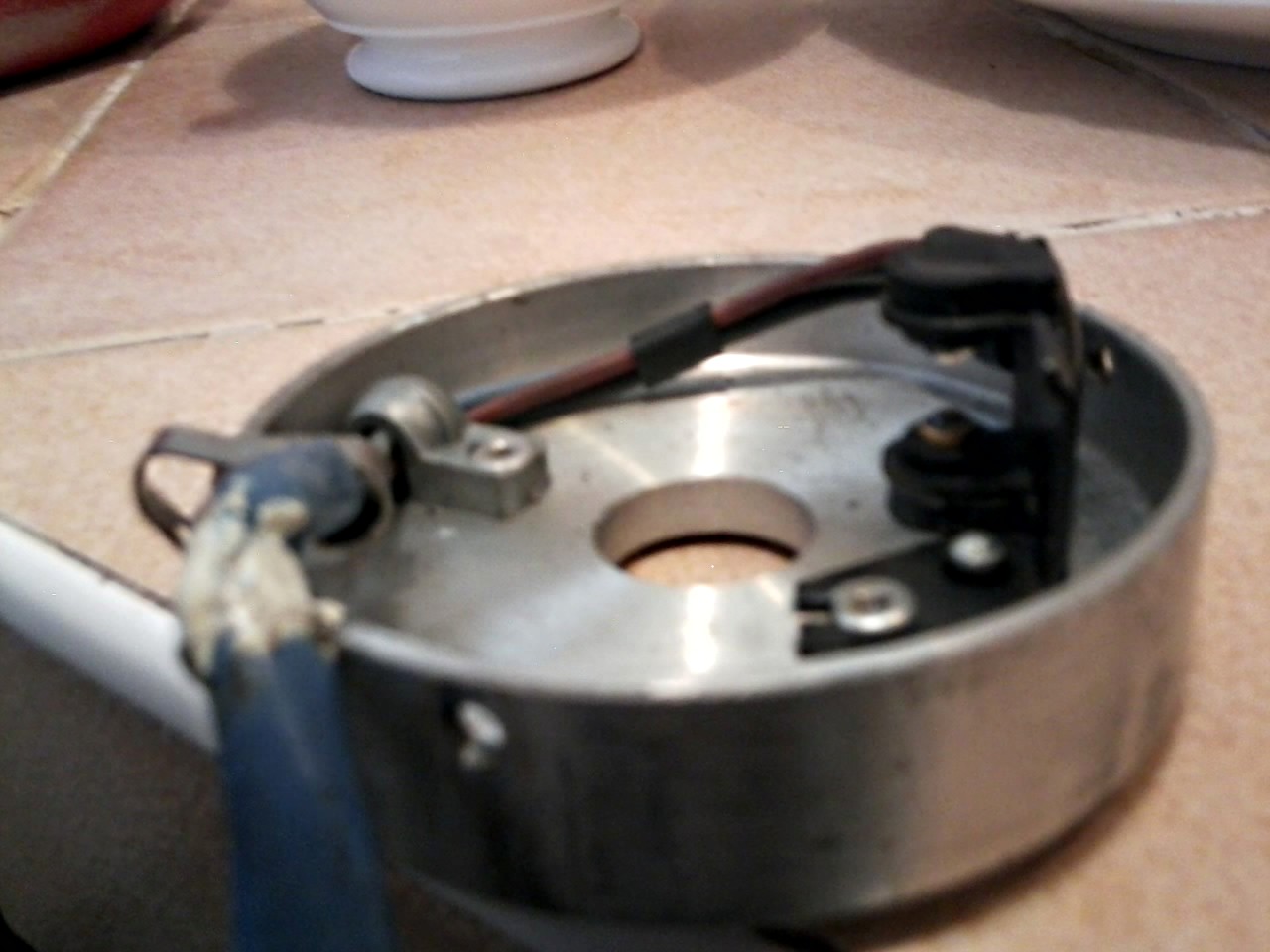 | Tommy, je sais que c'est pas évident à appréhender mais le fait que l'avance centrifuge agisse, c'est à dire que les deux petits ressorts se tendent, ne joue absolument pas sur le décalage doigt/plot car ce qui compte est la position d'une came (solidaire du doigt) et de l'ergot fixé sur les vis platinées. Ce qui se passe en dessous au niveau des petits ressorts n'influence pas la position relative de la came et de l'ergot. Dans la petite vidéo jointe, dans un premier temps je simule une avance centrifuge en tendant les ressorts en agissant sur le dessous du rotor, aucun décalage au niveau doigt/plot Dans un deuxième temps, je tourne le plateau pour simuler l'avance à dépression, là il y a décalage. J'avais fait cette vidéo il y a quatre ans. https://youtu.be/JwkntnyXvBk |