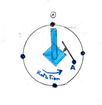 ![]() Je ne comprends pas bien ta question. Sur le dessin joint, j'ai visualisé l'ensemble solidaire came/doigt en bleu au moment précis de l'étincelle, cad au moment où le rupteur s'ouvre (je ne l'ai représenté que partiellement) . Le centre de rotation du rupteur "A" est fixe s'il n'y a pas d'avance à dépression. Donc au moment de l'étincelle, l'ensemble en bleu aura toujours la même position, tout ce qui se passe en dessous des cames comme l'avance centrifuge n'intervient pas du tout sur cette position. Cette position est déterminée par le constructeur, c'est lui qui décide où mettre le point "A" et il est impossible qu'une étincelle se fasse quand le doigt et le plot ne sont pas en face si c'est bien ta question. Quand A bouge un peu (avance à dépression) il y a effectivement un léger décalage doigt/plot largement compensé par la largeur du doigt. Bon j'arrête de monopoliser ce sujet, veux pas être trop lourd pour un si petit détail. |