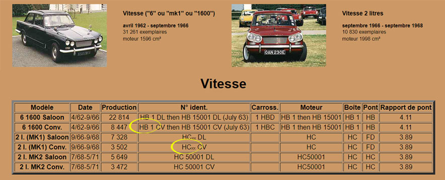 > Soit c'est une Vitesse à moteur 2 litres, première mouture qui ne s'appelle plus "Vitesse 6 " - ni Mk1, comme la Spitfire 4 ne s'appelait pas , non plus (officiellement) Mk1 - mais Vitesse 'tout court" auquel est associé un badge rectangulaire "2 litre". Son numéro de série commence par HC