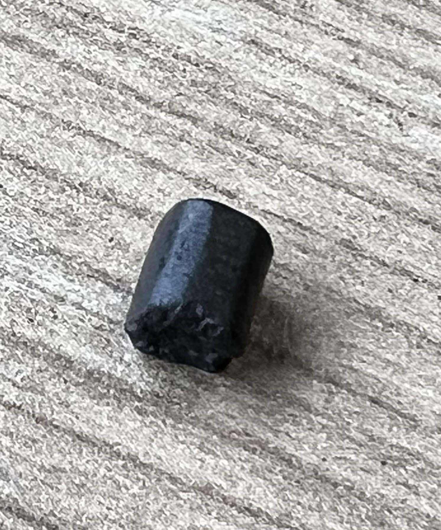 | Bonjour, Merci, effectivement, il fait 6 mm de haut 5 mm de diamètre, et la pièce est en plastique on dirait. Sous mon doigt, j'ai une pastille en feutre et dessous je ne pense pas qu'il manque une pièce comme celle-ci. |