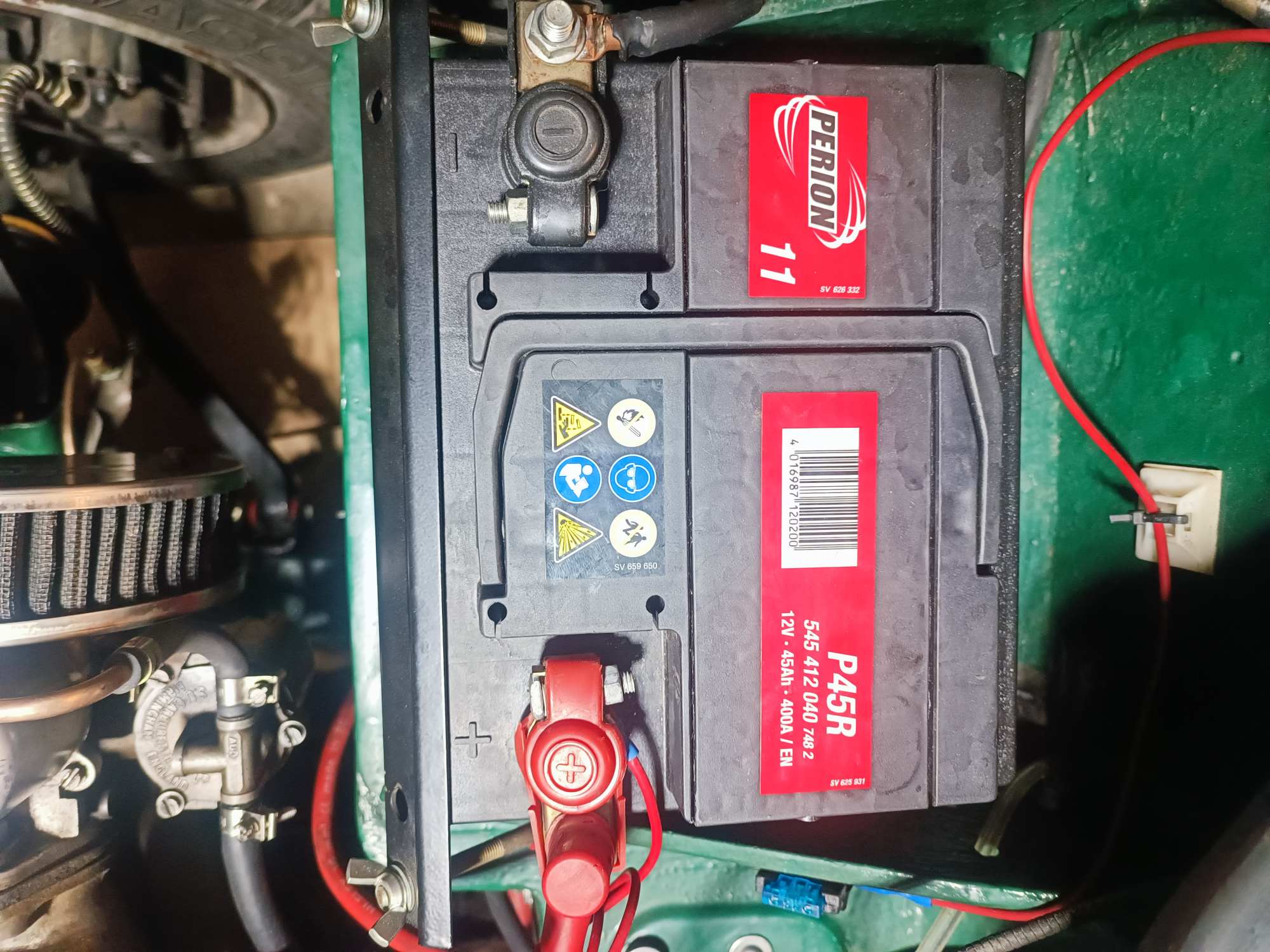 Voici une photo de la batterie montée actuellement sur ma 1300 mk3. 45ah, 400a au démarrage. Un poil moins puissante que celle de cl56, mais largement suffisante pour ce petit moteur.