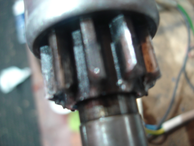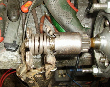 | Voulant changer le pignon de mon démarreur (qui accroche une fois tous les 10 ans), j'ai démonté le démarreur de ma spitfire mk1 (moteur hérald 13/60). D'ailleurs j'ai du démonté la sonde d'huile et la pompe à essence car impossible de le sortir (faudra que je revoie le cheminement des tuyaux de frein). Le pignon est évidement usé , 9 dents tout va bien elles sont toutes là. J'ai nettoyé , dégraissé et réussi à retirer le clips ...mais la rondelle d'arrêt avant ressort ne veut pas venir. Elle est libre niveau rotation autour de l'arbre , en comprimant le ressort elle bouge aussi de haut en bas (dans la mesure du possible). Je n'ai rien vu qui pourrait l'empêcher de sortir. Y a t'il une astuce ou j'ai un problème qui pourrait empêcher son retrait? Merci d'avance |