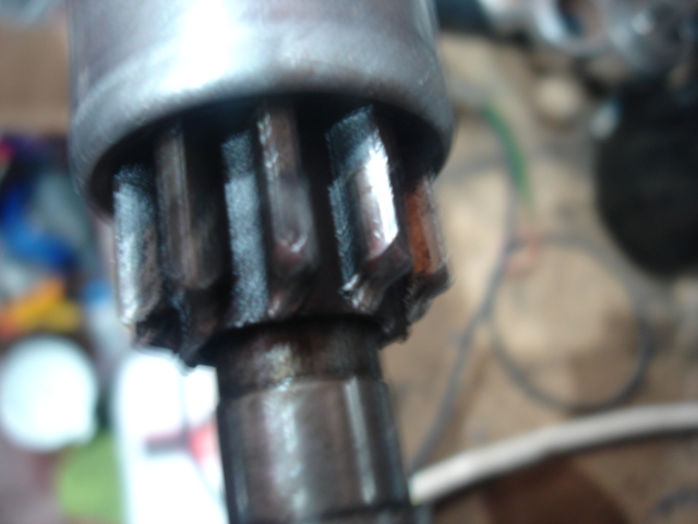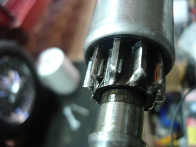 Je me suis aperçu que les dents étaient marquées suite à la dépose du démarreur. A l'origine le problème était que le démarreur tournait dans le vide, le pignon restant vers l'avant sur la rampe hélicoïdale. Je soupçonnais que ça venait de poussière d'embrayage qui collaient le pignon sur la rampe, mais il n'en n'y avait pas. Le fonctionnement étant correct en lubrifiant la rampe, j'en ai déduit, peut être à tord que le défaut venait du pignon qui doit être monté à sec et comme le plus gros du travail est la dépose du démarreur, j'ai préféré changer le pignon. Quand le pignon fonctionnait normalement, le moteur démarrait au quart de tour. Amicalement. |