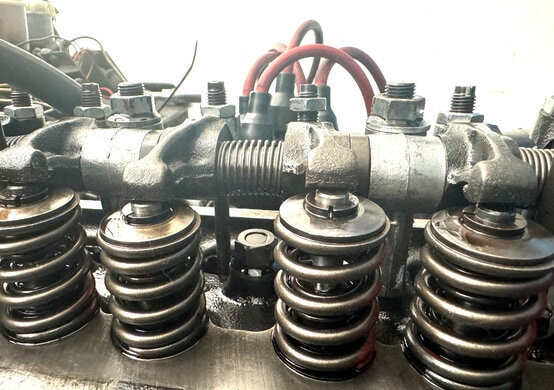 Curieux que tes tiges en place ne fassent que 196mm, ce qui correspond à un montage 1200/1300 mais pas 1500 (tiges 210mm), donc en accord avec ton arbre à cames MK3. Ta culasse correspond-elle bien à celle d'un moteur 1500? Pour vérifier, tu peux mesurer la hauteur totale et aussi noter le N° frappé ici (photo). il faut parfois gratter la peinture. La levée de came de l'arbre 1500 est supérieure à celle de l'arbre MK3 (0.240" vs 0.232") La culasse 1300 est moins haute que la 1500 de plusieurs mm. Que le rectifieur enlève quelques centièmes, ok, mais plusieurs dixièmes ça peut faire beaucoup si c'est ++.. As-tu installé des culbuteurs neufs refabriqués? car on peut rencontrer parfois ce genre de pb avec les refab. Les soupapes ont été remplacées et les sièges rectifiés: Une combinaison queue de soupape un poil longue + sièges usinés un peu descendus pourrait contribuer à accentuer le pb. Idem si on prend en compte le dimensionnement interne présent sur les poussoirs. (fond/cuvette + épais). Le recours à des tiges culbu + courtes est préférable, mais ici on est déjà sur les + courtes (GT6/Vitesse/TR6 = + long, (TR4 je sais pas?) Le calage des piliers est une solution alternative mais ça modifie la géométrie de la culbuterie. En conséquence il faut impérativement vérifier par la suite que la marque de contact patin de culbu/tige de soupape reste centrée sur la tige de soupape ou décalée très légèrement côté pilier. (marqueur noir ou bleu de prusse appliqué sur la queue de soupape). Si le décalage est excessif ou situé côté collecteurs, une usure accélérée des guides et sièges est à envisager, voire une rupture de pièce dans les cas extrêmes. Les cales sont également dispo dans le commerce (TT1910) ou Rimmer cdlt :) |
