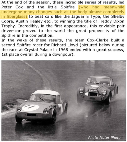 MAIS, nous ne sommes pas restés sans rien faire depuis, puisque, pour terminer en beauté cette cinquième édition, Jeoire a préparé un petit résumé de la vie oh combien sportive et remarquable de nos petits bolides. D’abord avec les exploits de Triumph Works, l’équipe officielle de TRIUMPH, ensuite avec les nombreux développements que ces succès ont suscité dans les équipes privées qui continuent encore, de nos jours, à faire courir des Spitfire en compétition. Si !