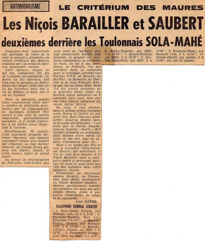 @Jeoire, Pour Ceyreste on s'est mal compris, je voulais dire que la photo publiée dans l'article concerne peut-être une autre auto sur une autre épreuve, sans pour autant remettre en cause la participation de Barailler à Ceyreste avec par ex 3B.