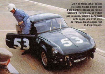 Il a déjà travaillé sur les deux années pendant lesquelles TRIUMPH a officiellement couru mais également sur les Spit spéciales comme Macao et d’autres voitures de course privées et, bien sûr, sur le Groupe 44 et « Kas ». Il connait bien, aussi, la carrière sportive américaine des Spit mais manque de témoignages et, surtout, de photos sur leurs histoire française. Ta contribution est donc très précieuse ...en espérant que d’autres connaisseurs nous donnerons aussi un coup de main.