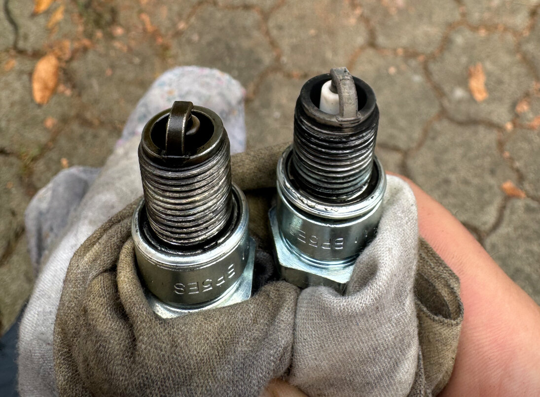 Bon voici le résultat le moins pire : bougie trop pauvre pour cylindre arrière (compartiment moteur ) et trop riche pour cylindre avant.