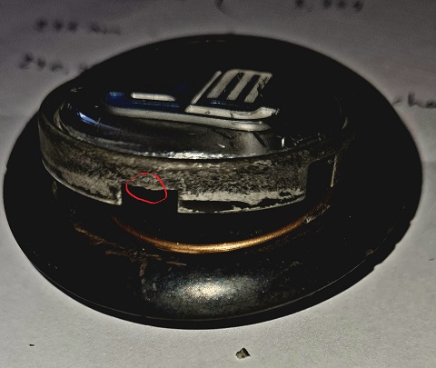 ![]() Je viens de faire un test. Volant monté et serré modérement. Je pose le disque noir sur le centre du volant/moyeu ( voir la 1ere photo en début du post) avec la languette dorée en appui sur le "ressort/tube" qui lui même touche la piste sur la colonne. On pose sur le ressort en fil cuivré "le logo" sur lequel on superpose (dans le bon sens) l'anneau noir que je tiens dans la main sur la 1ere photo. Et là on essai tant bien que mal avec clips et ressort cuivré que tout cela tienne ensemble. On appuie et là...ooohhh ...RIEN. Contact mis, toujours rien... En Bidouillant, le klaxon se met à chanter sur un malentendu mais s'arrête aussitot. Bref, il manque un bout du ressort cuivré qui doit venir s'écraser au centre du disque noir, qui lui meme à une partie métallique ( voir toujours la 1ere photo). J'ai modifié le ressort pour qu'il pointe vers le centre métallique et cela fonctionne. Mais l'anneau métallique est défaillant de part ses fixations ( manque une patte, voir ptet 3 si il est censé ressemblé à la photo de11h13 ce jour...). Sinon ce sera çà: http://www.datch.fr/fr/mini-mg-triumph-centre-de-volant-spitfiretr4tr5tr6-klaxon-p-17978.html à cause d'une pauvre patte métallique ( voir photo). |
