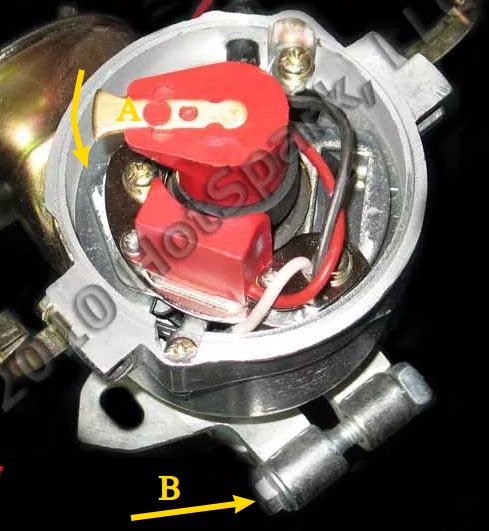 En addition à la suggestion de Steph, le problème de montée en régime sur route est-il présent également à froid ou bien c'est uniquement moteur chaud? Dans ce dernier cas (voir le jeu aux soupapes, la bobine et son circuit d'alimentation (résistance), le condensateur). Un souci avec l'allumage (trop ou pas assez d'avance ou mécanisme grippé ou cassé) et l'arrivée d'essence (obstruction) sont également possibles: -Remplace le filtre à essence présent sur la durite d'entrée de pompe (venant du réservoir). Assure-toi d'orienter la flèche vers la pompe. -Dépose la tête d'allumeur et vérifie à la main que le rotor puisse tourner de quelques degrés en sens anti-horaire et ensuite qu'il revienne bien à sa position initiale sous l'action des ressorts. (photo A) -Vérifie que la valeur de l'écartement maxi des contacts du rupteur est correcte (0,4mm) lorsque le patin se situe sur l'un des 4 sommets de la came (tourner le moteur à la main, contact coupé) (photo D) -Contrôle le calage de l'allumage à l'aide d'une ampoule 12v : Contact coupé, dépose la bougie N°1 côté radiateur et tourne le moteur à la main (par la courroie par ex) dans le sens horaire (en étant placé face à la poulie ) jusqu'à ressentir au doigt le début d'une forte expulsion d'air par l'orifice de bougie. Dès que c'est le cas, tourne doucement le moteur pour venir aligner le repère présent sur la périphérie de la poulie avec le repère 10° de l'échelle marquée "before" sur le carter de distribution moteur (photo C). Reste à brancher les 2 fils de l'ampoule sur la borne "moins" de la bobine et sur le bloc moteur (masse). Débloque la vis transversale de maintien de l'allumeur (photo B) et mets le contact. Si l'ampoule n'est pas allumée, tourne l'allumeur juste un poil dans les 2 sens pour obtenir cette condition puis tourne l'allumeur sens anti-horaire pour dépasser un peu le point d'extinction de l'ampoule. Ensuite reviens doucement en sens horaire jusqu'au point précis d'allumage de l'ampoule, c'est calé. Resserre la vis de l'étrier de maintien de l'allumeur. Cdlt ;) |