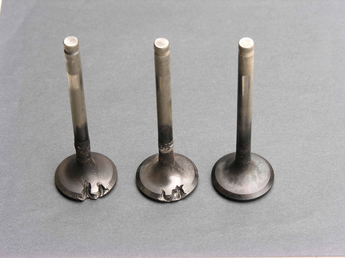 | (Le fichier "19956ltrburntvalves.jpg" est trop volumineux ou le nombre d'élement maximum est dépassé et n'a pas été enregistré) Bonsoir Tonton, Une soupape grillée ou brûlée peut faire suite à des causes diverses (mauvaise fermeture par manque de jeu au culbu, mauvais guidage car trop de jeu dans le guide, portées soupape/siège sur culasse non concentriques, carburation excessivement pauvre, etc..) Généralement ce sont les soupapes d'échappement qui sont touchées, du fait de conditions de fonctionnement + sévères. Dans tous les cas le "grillage" désigne le passage de gaz brûlants faisant effet chalumeau entre soupape et culasse avec érosion/fonte de métal. Ne faisant plus franchement contact avec la culasse, la soupape n'a également plus la possibilité d'évacuer les calories correctement. Cet état de surchauffe aggrave le processus directement (ou indirectement en favorisant l'apparition de cliquetis/détonation à cause des points chauds créés dans la chambre). c'est un cercle vicieux avec effet de réaction en chaîne.. cdlt :) |