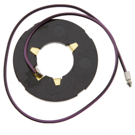 Le contact entre le bouton poussoir du volant et la piste laiton se fait via un contacteur à balais logé dans le volant. (photo)