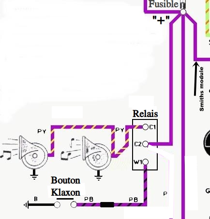 Merci Qui. Je ne vois pas de relais sur le tablier. Juste le klaxon lui meme !