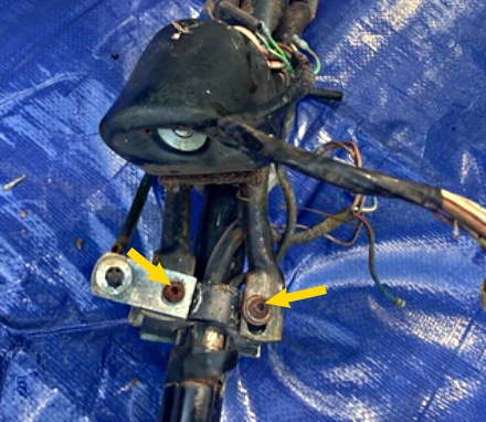 ![]() Merci à toi, c'est le but du jeu ;). Le bord du col dessoudé de la colonne et celui du tube doivent être rapprochés bien en butée (flèches rouges) avant de percer les 3 trous au diamètre des rivets pop. (pas à 120° mais un au milieu au dessus et les 2 autres de chaque côté) (flèches bleues). |