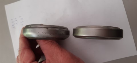 ![]() ![]() le disque n'est pas trés usé, le mécanisme me semble avachi et usiné sur les ailettes, je vais prendre des mesures pour comparer avec le neuf, la butée à l'air nickel; par contre les pions qui tiennent la butée sur la fourchette sont grippés et la butée n'a pas le mouvement angulaire, ce qui explique peut-être l'usure des ailettes. Est ce que celà explique mon pb de course ? La nouvelle butée est moins épaisse que l'ancienne (16.5mm contre 19 mm environ ), est ce normal et sans conséquence ? (photo) Vaut il mieux remonter la nouvelle ou l'ancienne ? J'en ai profité pour ausculter la boite, à part une petite usure sur quelques dents du pignon de MA, tout à l'air ok? merci pour votre aide |